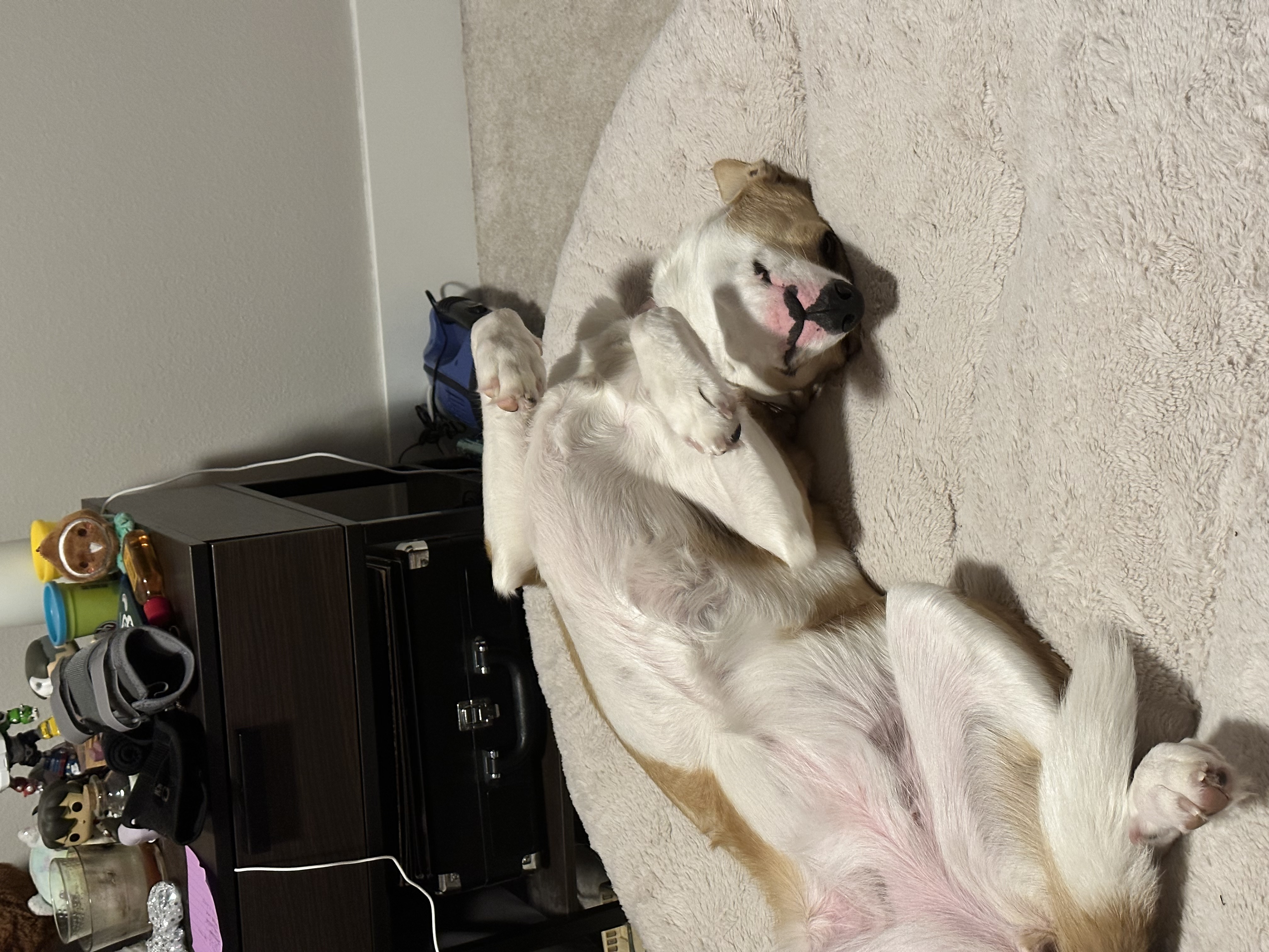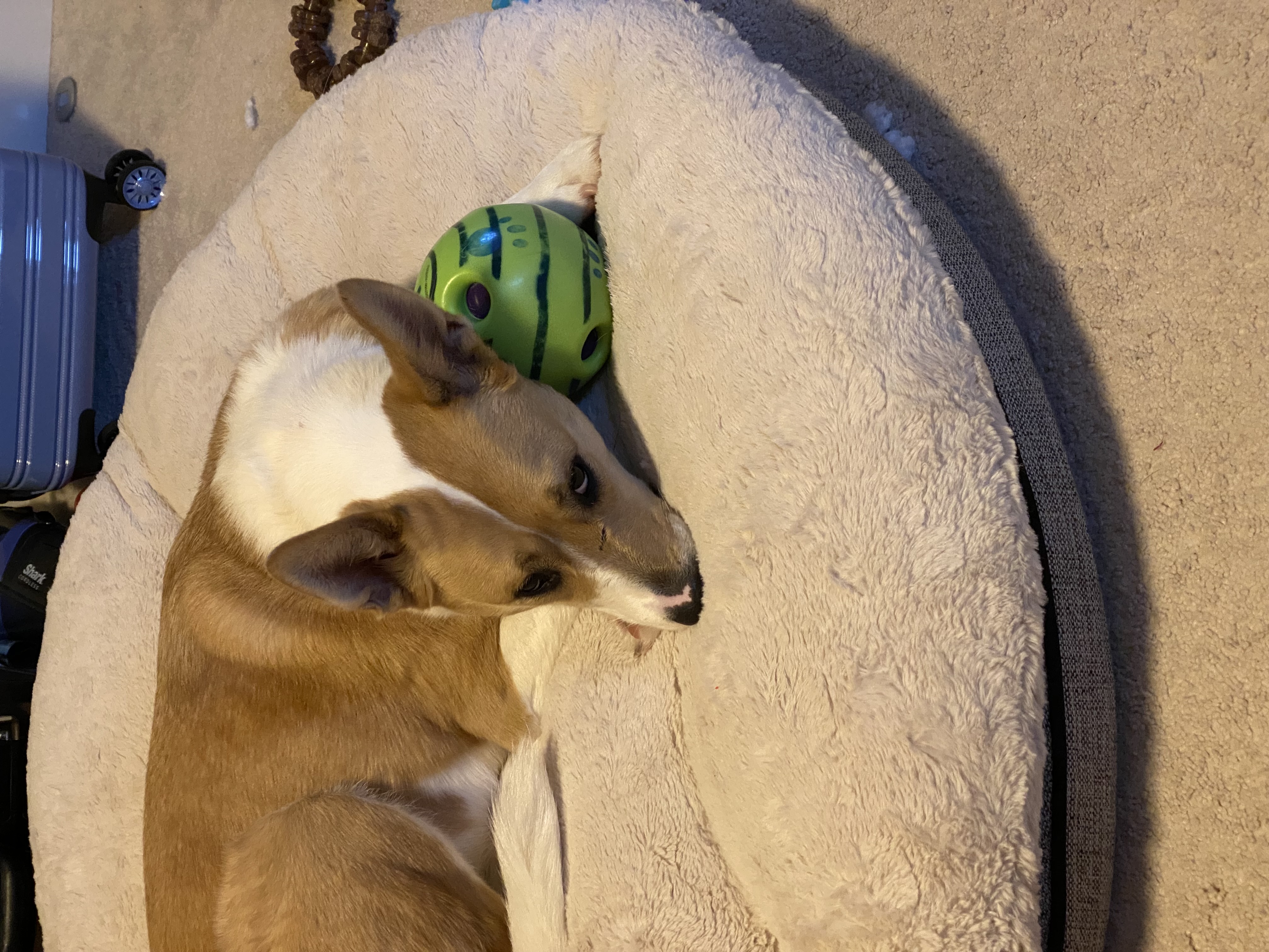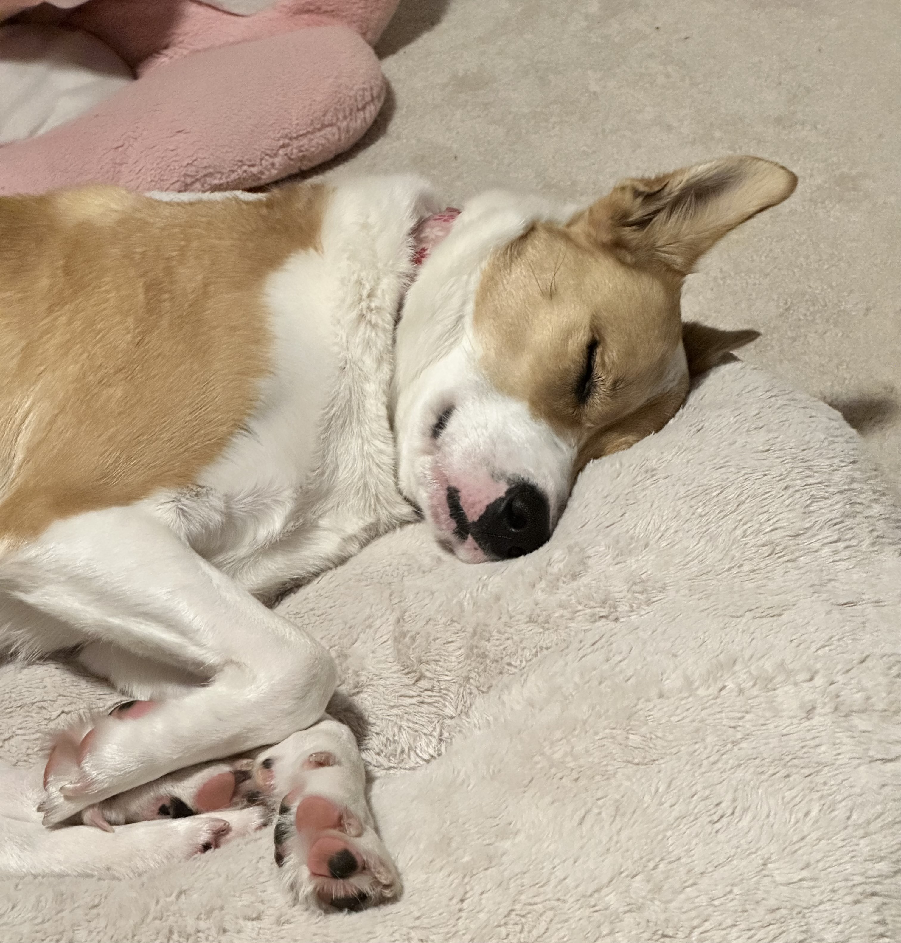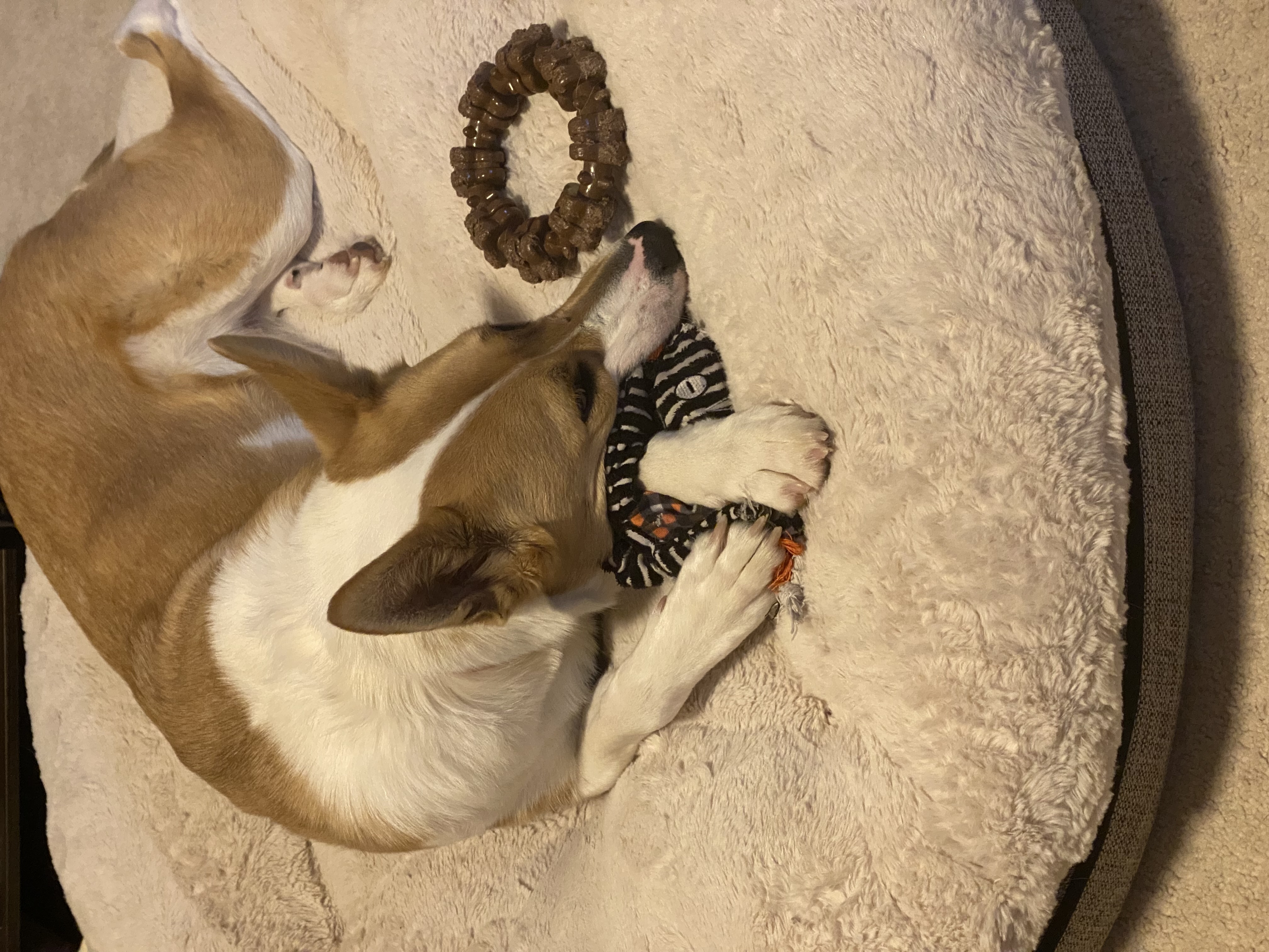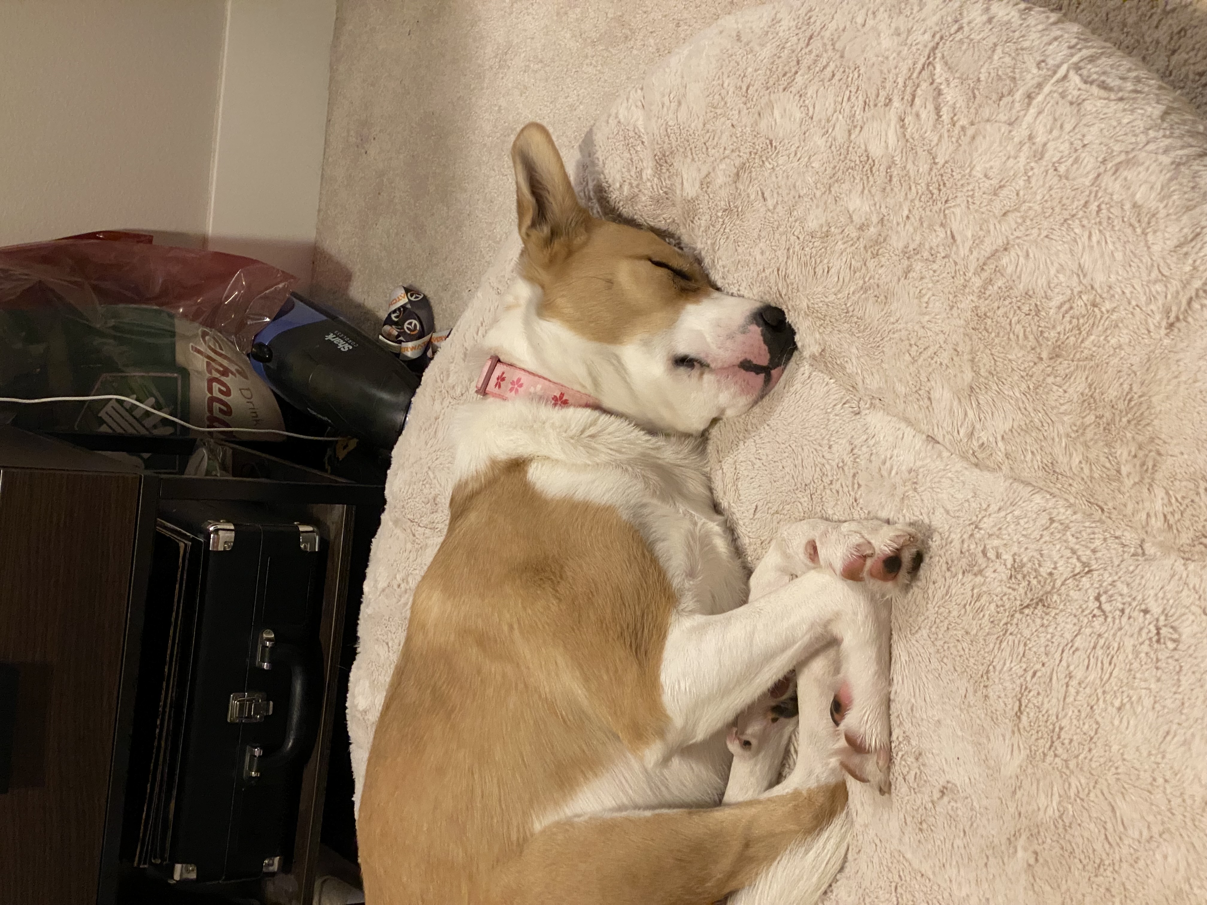 Penny is a 3 year old German/Australian Shepherd mix. I adopted her when she was 10 months old. She had a few owners before me, but I will be the last person to adopt her. She loves tearing up her toys, napping in a sunbeam, walks in the snow, splashing in her pool and snuggling with me before bed every night.